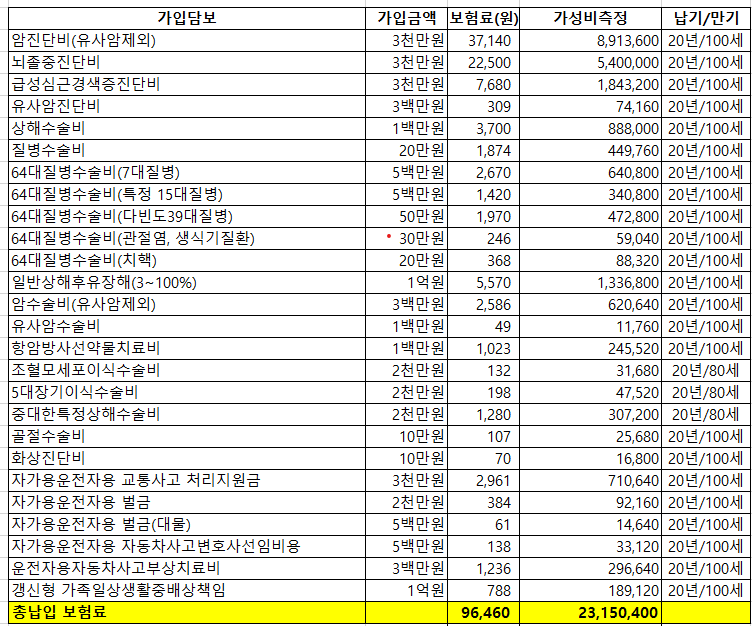 30세 남자 암보험 내용 현재 어느정도 잘 받았다고 생각하는 내 보험 설계 내용이다.