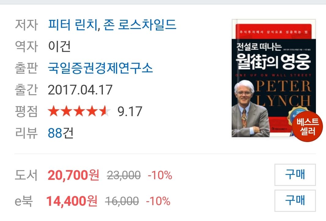 그리고 언제든 찾아볼 수 있게 곁에 두는 것.주식투자한다면서 아직 피터린치 월가의 영웅을 읽어보지 않았다면...... 수학의 정석처럼 몇번이고 읽어야할 책